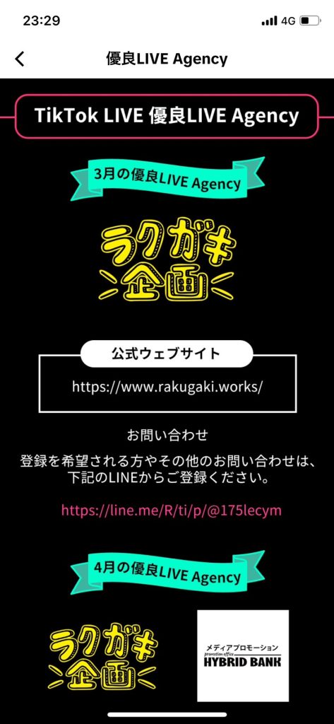 6ヶ月連続優良エージェンシー獲得 2024.09.18 TikTok LIVE優良LIVE Agencyに我々「ラクガキ企画」が6ヶ月連続で選ばれました。 連続受賞は「ラクガキ企画」のみです LIVE中のイベントバナーから表彰ページにいけます! 配信を伸ばしたい、配信に興味ある方はぜひ弊社公式 LINEからお問い合わせ下さい!